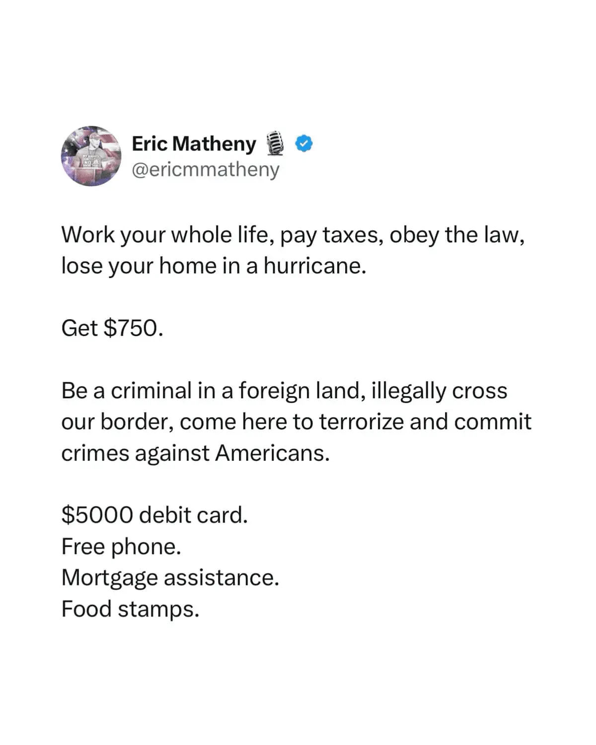 I'll take it will make Biden/Harris look bad for $800.Why are civilians being told not to help in hurricane relief?