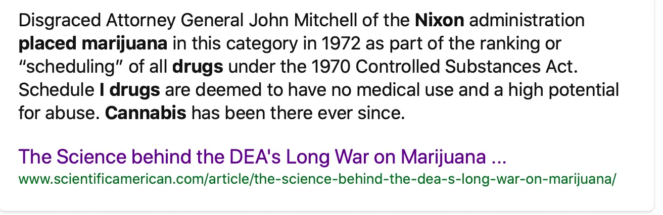 So if you want to be angry with someone, be angry with nixon. He's the guy who is responsible for marijuana being a crime.