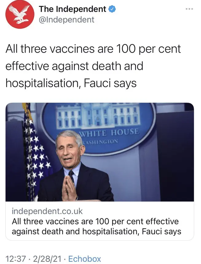 If you think there is no difference between the two, or somehow someone posting information that shows "no vaccine is 100%" makes these failed vaccines somehow better, you're wrong. People can see and know what's going on.