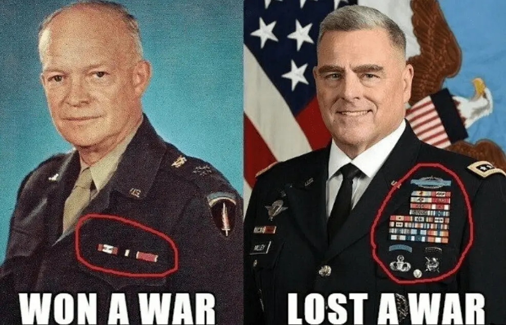 It kind of seems like something that is going in the direction of a Banana Republic. However, one thing. Ike left after WW 2. Retired in 1948 and rejoined as leader of NATO for a year in 1951. The Empire with foreign treaties started with the Cold War and Korea. Perhaps the ribbons increased at that point. In the military there are people who go to different parts of the world for issues a lot different then back in a simpler time.