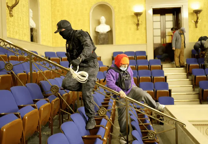 so this woman climbed through a window she and a mob of rioters smashed out in order to clear the barricades keeping that riotous mob from entering an enclosed space where innocent civilians were sheltering. The police protecting the innocent civilians were greatly outnumbered by a violent mob.We don’t subdue unarmed persons who are posing no imminent thread to us by shooting them.