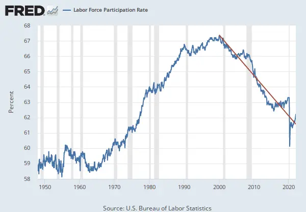 It reached it's peak in 2000, but it's been in decline ever since, as boomers had started to retire.