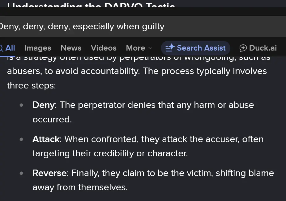 3) he never acknowledges mistakes made (so he can correct them). He always blames others