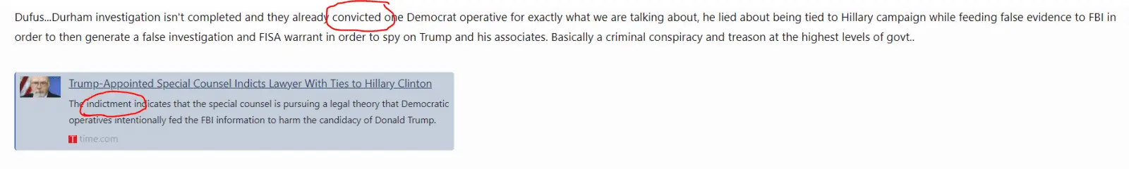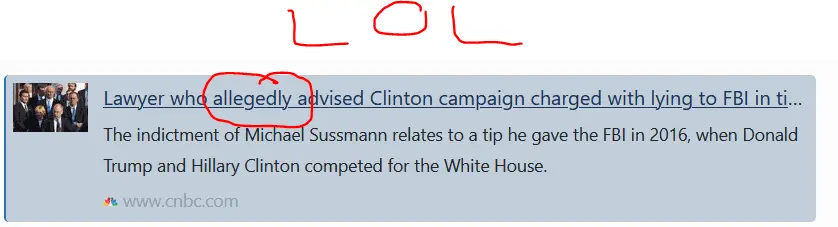 Place your bets. Grand jury found him lying. Durham is very deliberate doesn't care about political timelines, there will be more heads to roll and it could go all the way to Hillary and higher.
