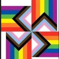 It is four pride flags together situated in a way that it forms a swastika.