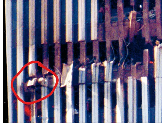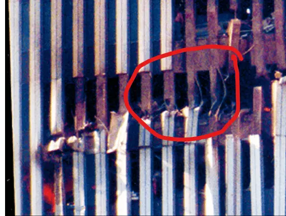 How would an explosion on the INSIDE of the perimeter column cut aluminum cladding on the opposite side of the perimeter column??? Did the explosive force come from inside, go around the perimeter column and come back towards the outside. Is below what you are suggesting happened?