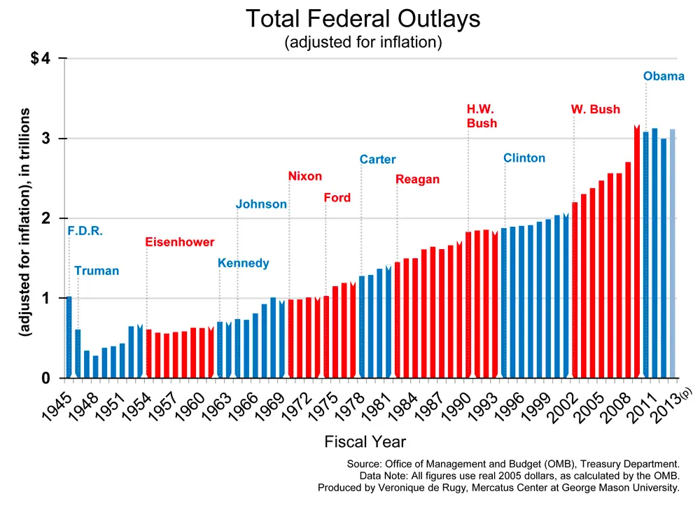 3. With corporations having record profits under Democratic Presidents, and the stock markets reaching record heights, both corporate and personal income tax revenues rose accordingly, and the deficit is reduced.