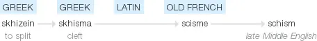 - the formal separation of a church into two churches or the secession of a group owing to doctrinal and other differences.