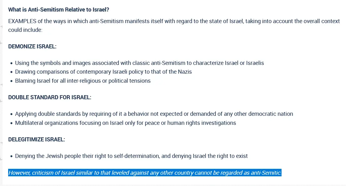 However, the final italicized "caveat," at the end of that definition, does provide some small wiggle room, for you to provide some small critique of Israeli policy. . . I suppose?