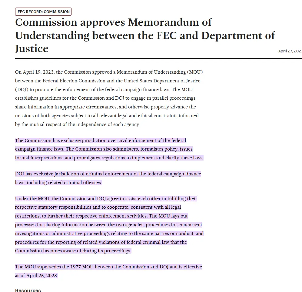 FEC Record Commission Article Published April 27, 2023: Commission approves Memorandum of Understanding between the FEC and Department of Justicewww.fec.gov