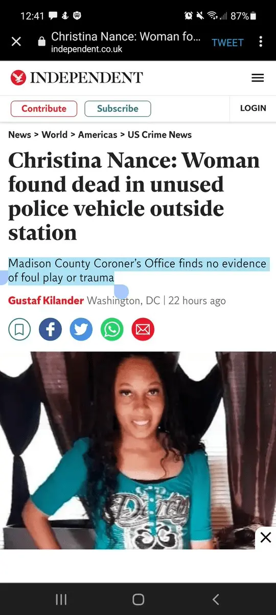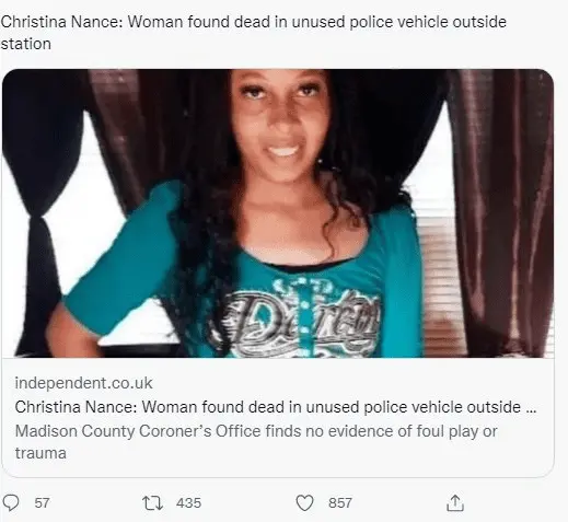 White coroner found no foul play or trauma".. So what, a person just crawls into a random locked police vehicle and dies of natural causes? 2) Alabama. Personally, I don't know why people live there. Mississippi, 'Bama, Kentucky, etc. I've been to those states; many R backwards.