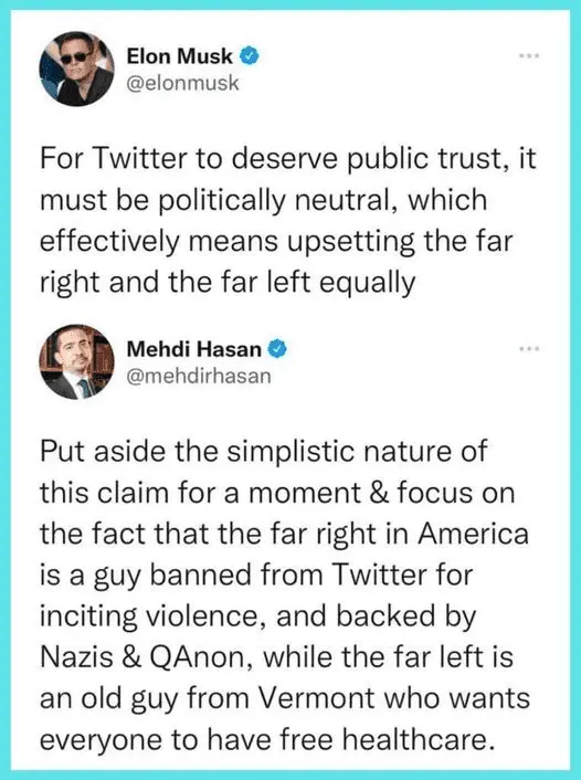 I'm taking the move at face value. Firstly, it shows Mr. Musk's devotion to the Constitutional equality of all. And he was willling to risk his popularity and fortune to encourage a healing of the rift between left and right's oneupmanship, one against the other, double to the rear march, repeat or retreat. He could also win friends on both sides by letting nature takes its course under conditions of equality. If the left shows its snarky side, they will lose a good supporter, a hard worker, 2/3rds of the nation, and a life long on respect and short on future ninnyhammering.i think Elon Musk wants to own Twitter to put Donald Trump back on Twitter.