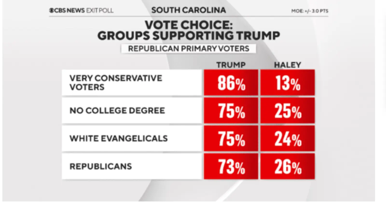 A quarter of Republican voters tonight in SC voted for Nikki Haley. Many of them will NOT be voting for Trump.