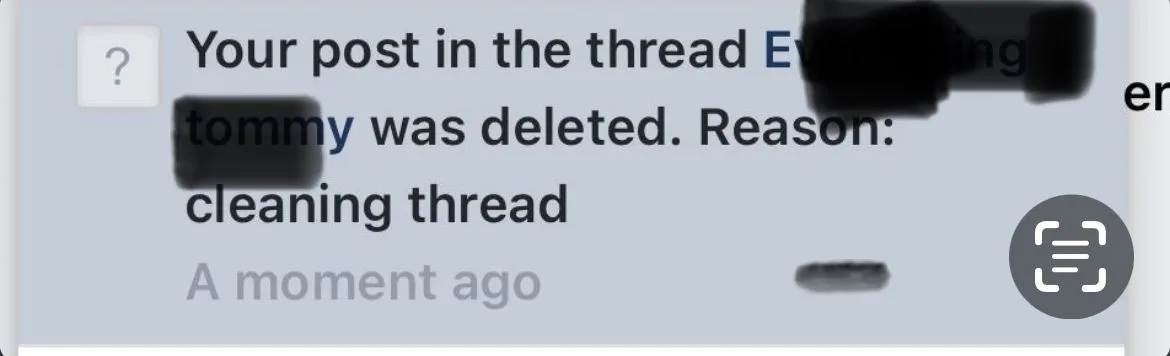 We get shitty little unsigned memos in our pm telling us when a thread has been deleted or a post has been deleted etc. The PM ‘s are “signed” instead with a question mark. FFS.