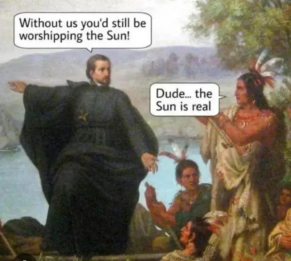 I loved the movie Black Robe...and the message of the climax, when the Indian tribe finally caved to the Jesuits and agreed to spread the faith to other neighboring tribes. As a result the tribe was massacred by their neighbors. And the title character tearfully made the point to his fellows that the Indians were ALREADY living "for each other" as Jesus wished....BEFORE the Jesuits showed up preaching their blasphemous, hypocritical bullshit.