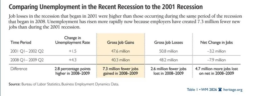 The OP doesn't speak of the biggest problem Bush faced - and it was a very real problem that explains his abysmal job growth.