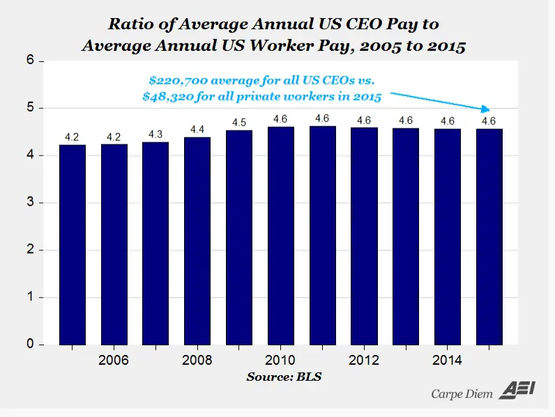 New BLS data show that for all ‘chief executives,’ the ‘average CEO-to-average worker pay ratio’ is less than 5-to-1 - AEI
