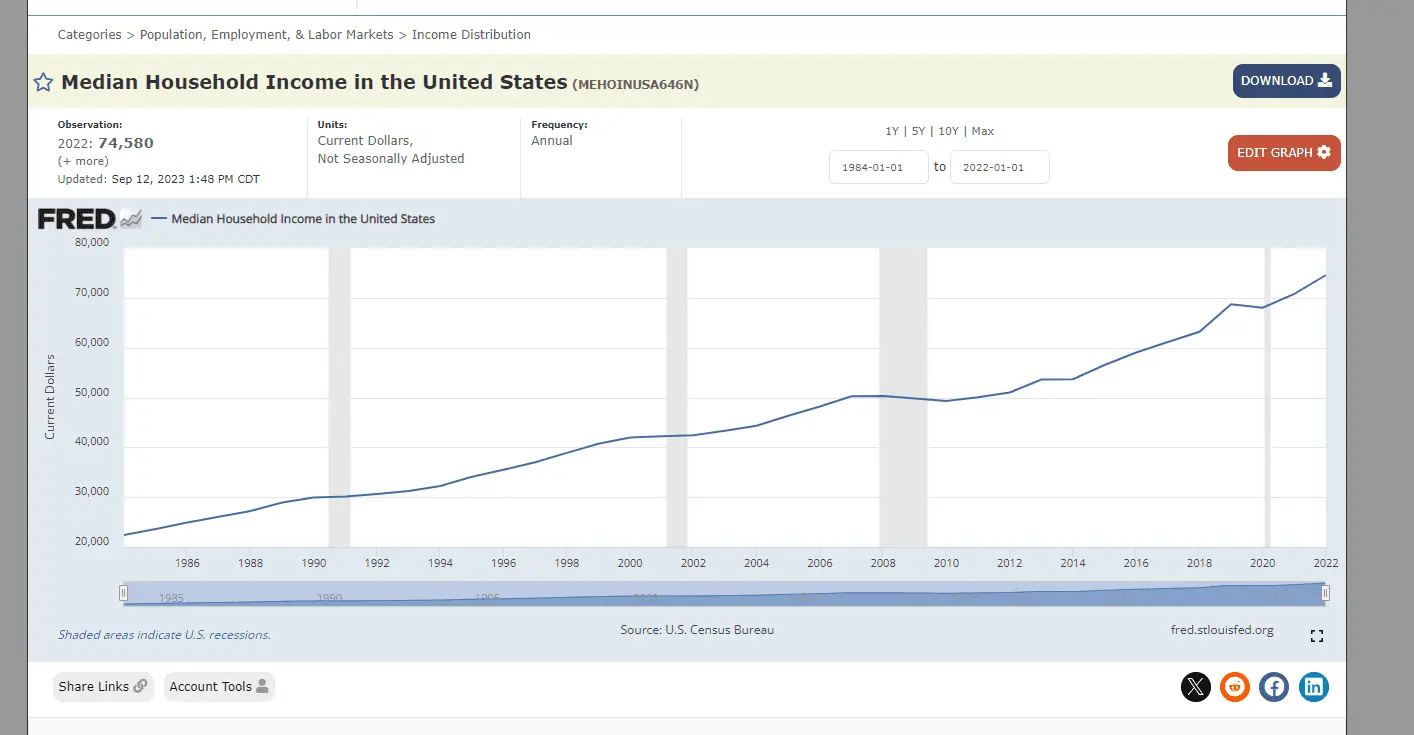 Income in general goes up each year, not because of inflation nor tariffs, but because of the nature of our system.