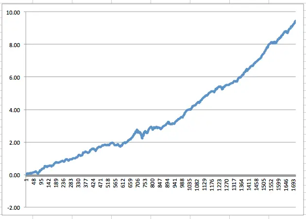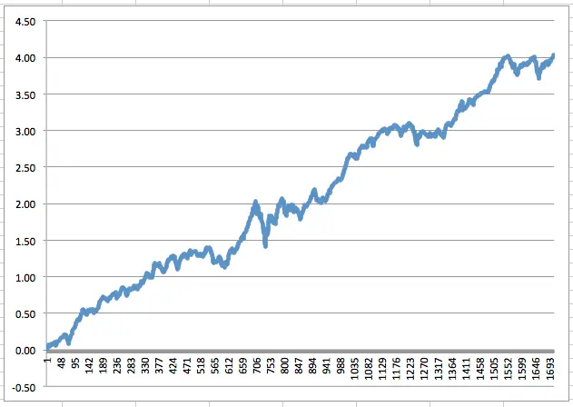 So based on this evidence, we should be able to conclude that although the price of the S&P 500 goes up and down, over any period that is at least 6 months long, it will at least retain its value, and on average, it will return 20%. Although we're only looking at one year of data - we can stagger 6 month samples so that we have as many samples as we like - and we could make a nice chart that shows the odds of winning or losing X dollars over certain intervals - and using all that, we should be able to convince people, like yourself, that the S&P 500 will always retain its value over 6 month periods.