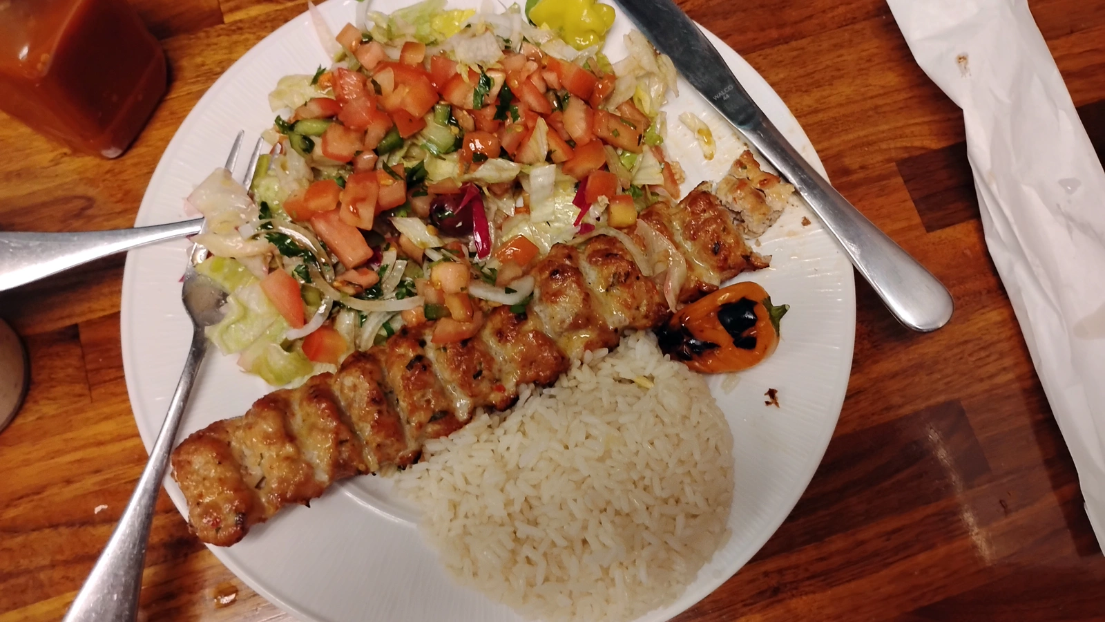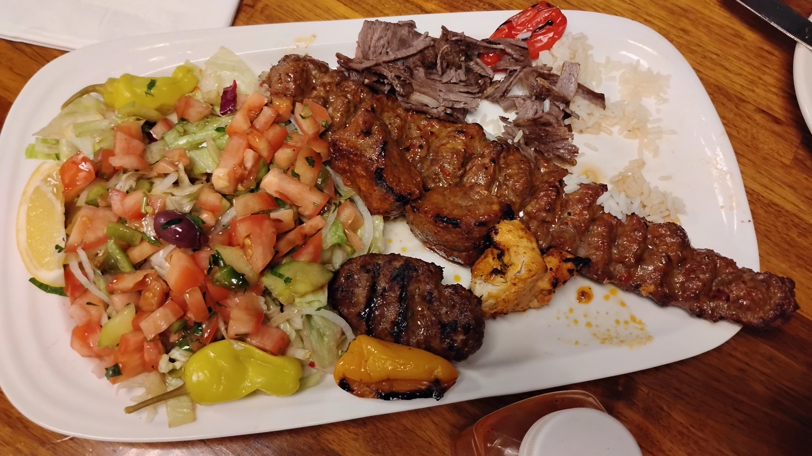I've always been attracted to the American Southwest and the Great Lakes areas more than any other areas of the U.S.. And also...MAINE! I often find that climate, geography and food preferences are mysteriously intertwined for me. My wife, although from Peru, also visited Spain, has some cousins there.... And was absolutely enamored with the food as well as the geography. So that really seems to be a thing. That makes me think that she would probably also appreciate the food that you described from your area. As a Peruvian she is really a mix of Native American and Spanish herself. As for myself, I prefer food that is kind of blend of meat, vegetable and grain bits. Kind like this simple stuff we had at a Turkish restaurant recently. (And the meat was even a little too much. We had leftovers. The nice salad right next to it made the meat even more enjoyable)Some of it is; Spaniards and Mexicans settled in Santa Fe and San Antonio pretty early, and California was settled centuries ago, though the population was very small. Tex Mex is a real subcategory, because of the beef over goat and lamb, mostly., and seasonings, and then there is the mesquite wood smoke flavoring.