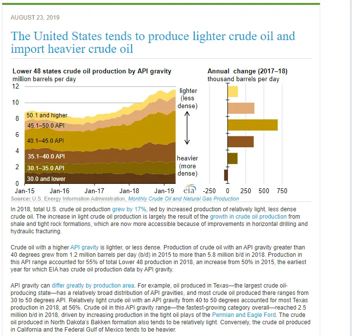 Wrong!Nope, US imports most of its light, sweet crude oil and produces mostly heavy, sour crude oils, like shake oil.And oil is not equal to oil. As far as I know the US makes mostly light oil.