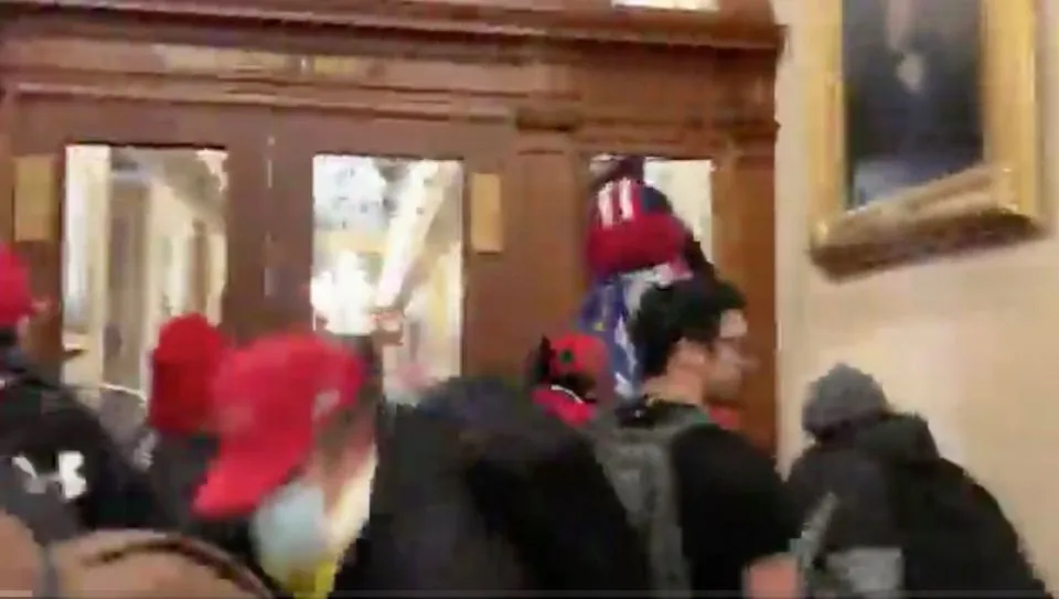 Police say Ms Babbitt was shot by a plain-clothed officer after breaching the building and attempting to enter the House chamber.