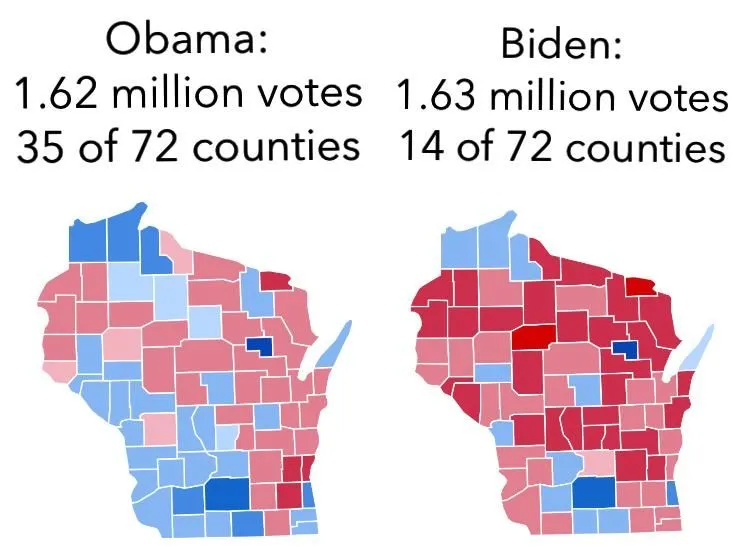 Consider that Biden won despite receiving a record low share of the Democrat primary vote compared to Trump’s share of the Republican primary vote.