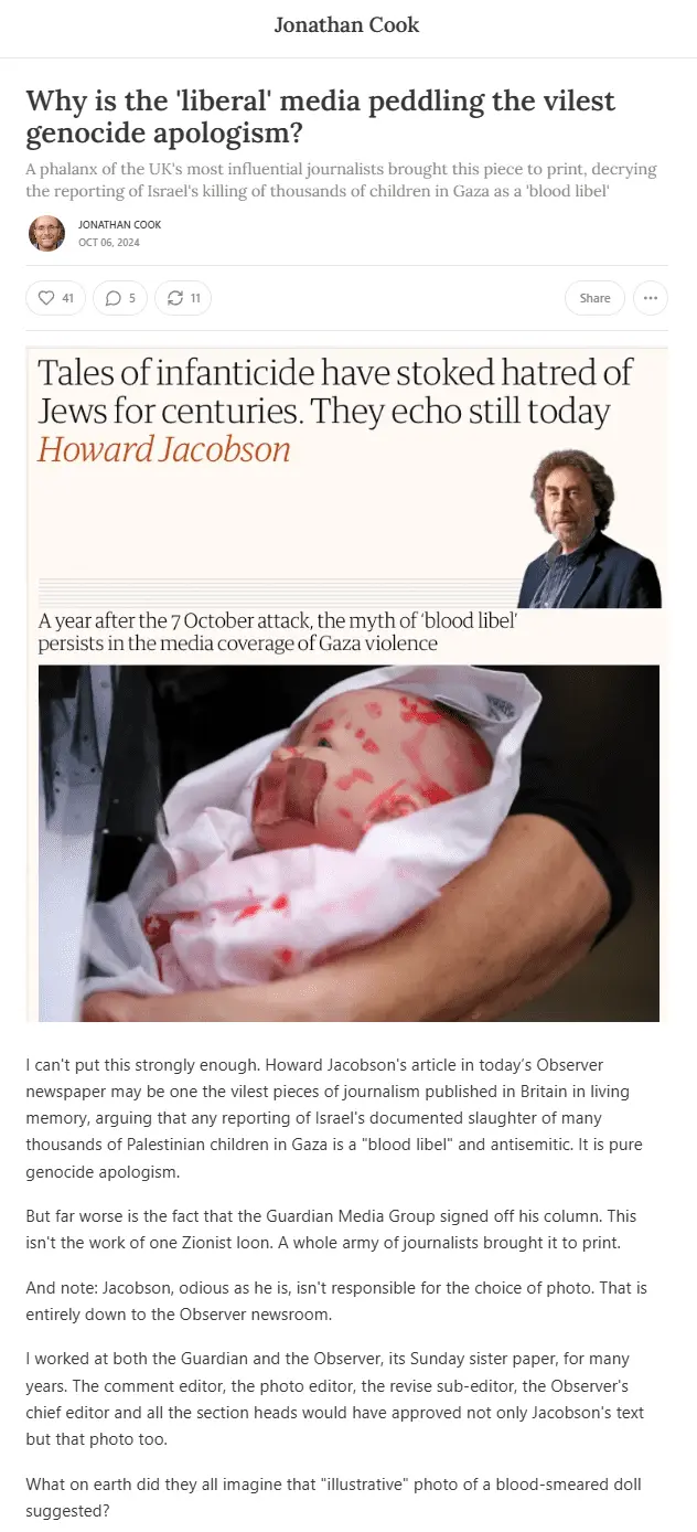 Jacobson isn't "shedding light" on anything, he strives to misrepresent genocide by Israel as nothing more than an unavoidable consequence of Israel's efforts to address terrorism and that to see it any other way is to imply Jews are once again being "blamed for" a "blood libel".So anyone shedding light on that will get attacked.
