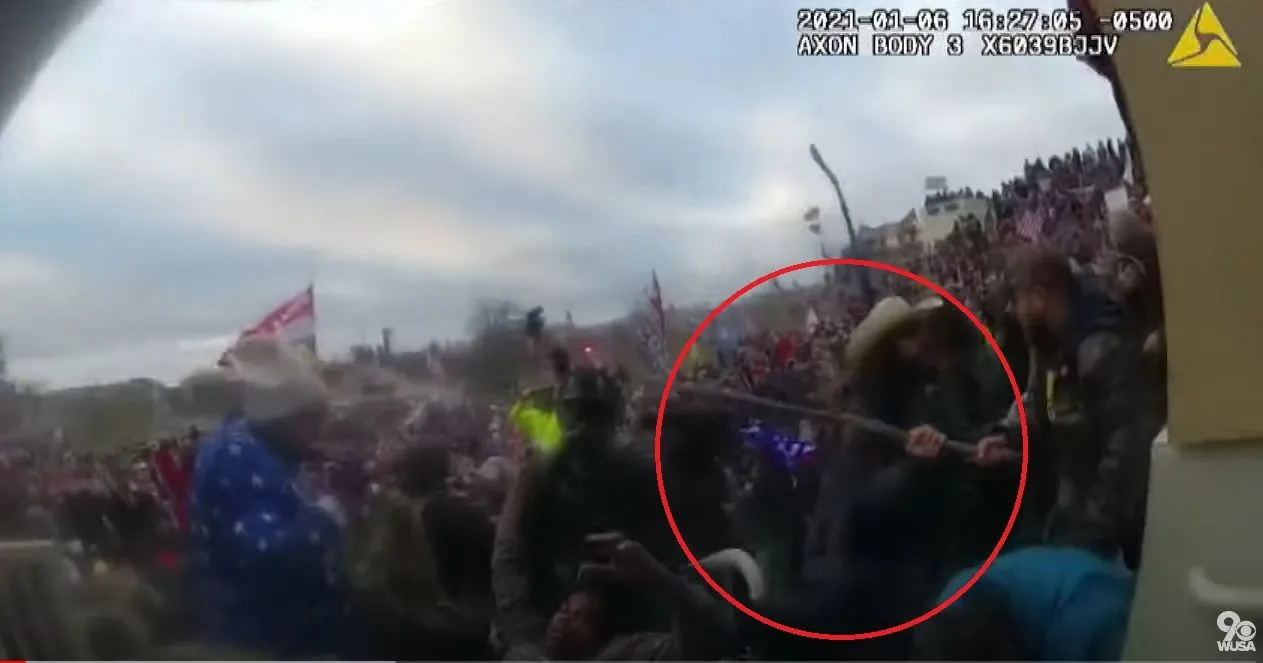 "she's dead!" But police were too busy fighting back that violent mob of domestic terrorists to bother with her. Then while unconscious, she's hit with a tree branch. That tree branch was thrown at police by this guy and landed on top of her..