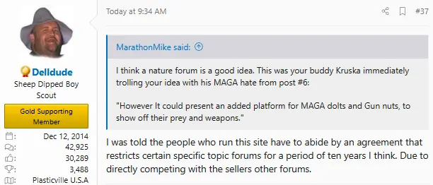 Plenty of forum sections, I'm sure folk can find a home for their thread that they wish to create on nature.Wild animals, from deer, to birds, to thousands of other animals, are not pets. The environment is not your garden, or landscape. People like to be outdoors, see things, take pictures, share videos or pictures of animals they did actually see in the wild, but don't have a dedicated forum for doing so. Would you consider having a Nature forum? I think it would be much more popular than some of the less trafficked forums.