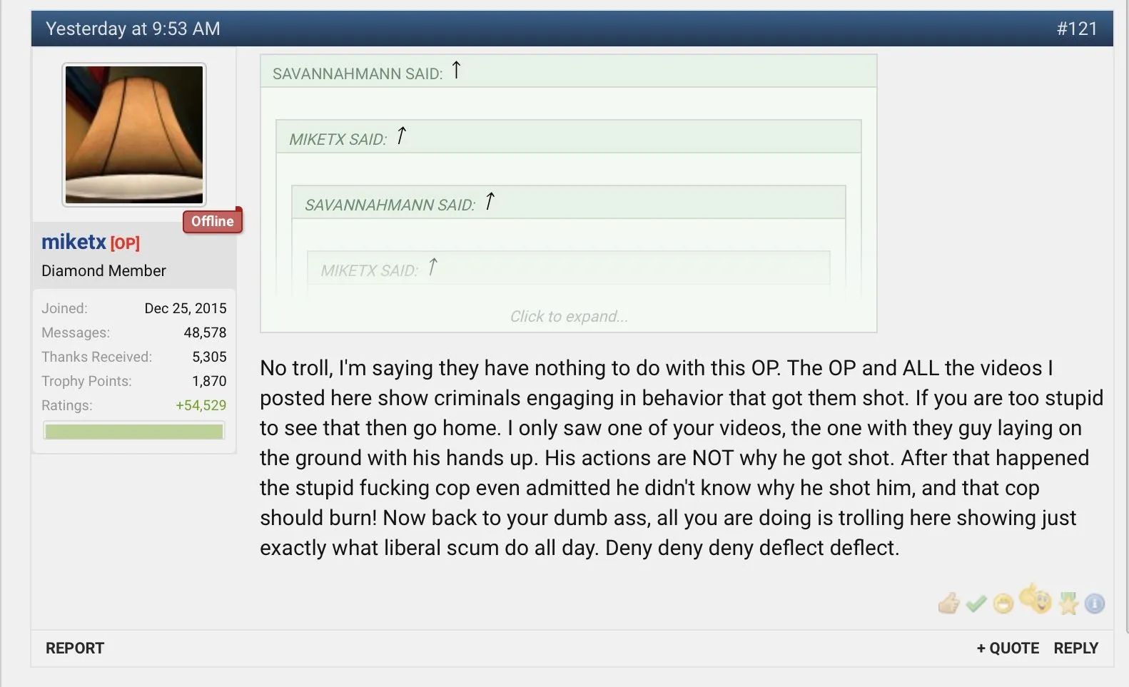 Yeah yeah but we know, almost every time, the savage fails to follow the cops' instructions. That gets your hat knocked off. That's the way the public feels so.....