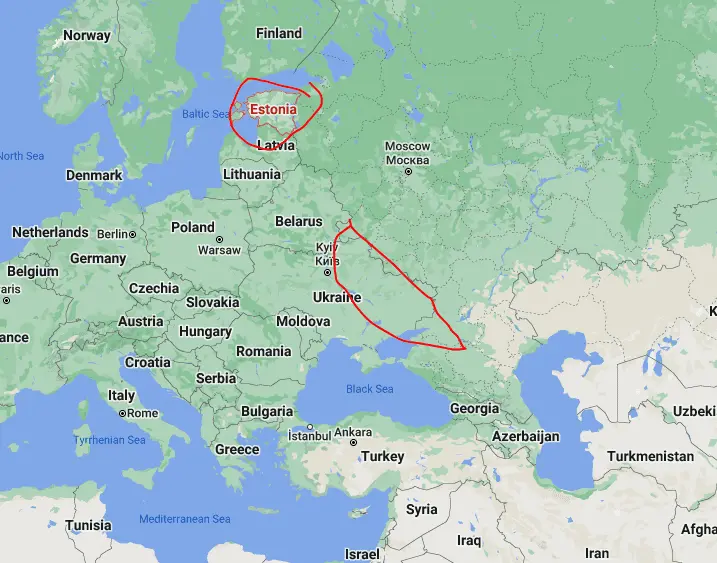 You have to circle Estonia AND Latvia as both are part of NATO. Fair? If you include them both it is a sizeable piece of land.Oh come on now, if you are Russia, which of these two are you worried about being controlled by your enemies....