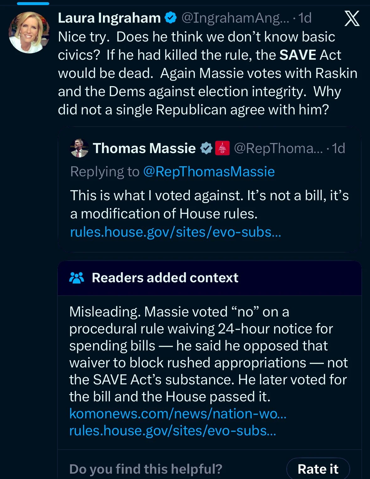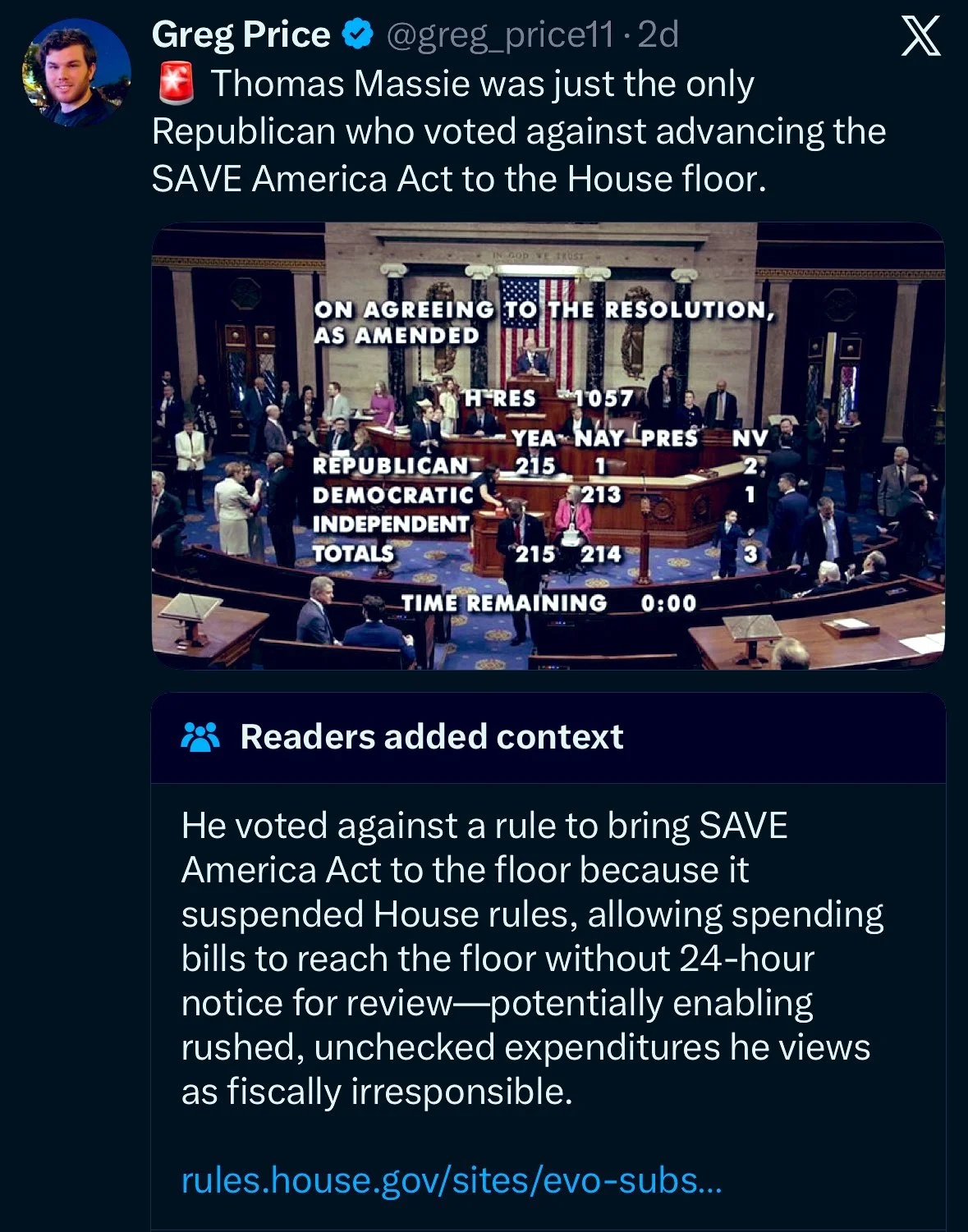 If you fell for Laura and Greg’s slop you were cheering for the Pelosi doctrine that we should pass bills to see what’s in them. If the rules package had failed, the rules committee would have written a better one and SAVE Act would have still come to the floor.