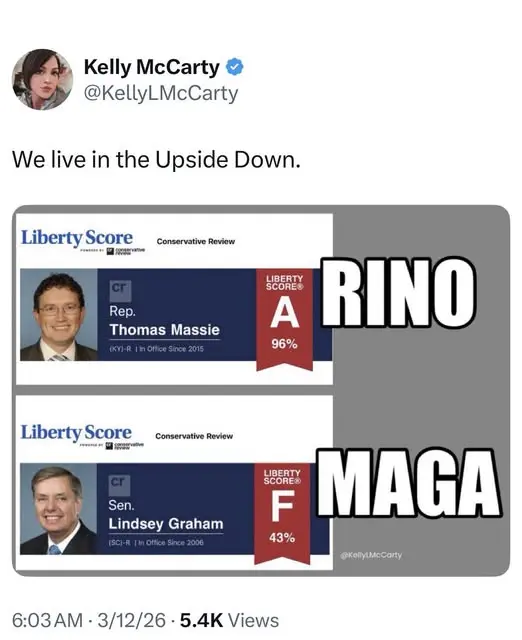 What the heck has happened to the GOP? Massie has a LOT of good bills that MAGA would support 100%, collecting dust on Johnsons desk. And most of the Trump supporters, including MAGA, won't say a word about it.