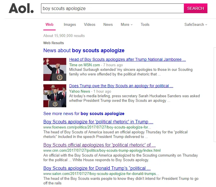 Boy Scouts official apologizes for 'political rhetoric' of Trump speechI was searching for credible sources referring to the boy scouts as Hitler Youth. THAT is what i found. You can lie and deflect all you want, but that is what was said. Credible sources referring to the boy scouts as Hitler Youth.Well here's one that says it word for word in the headline.L