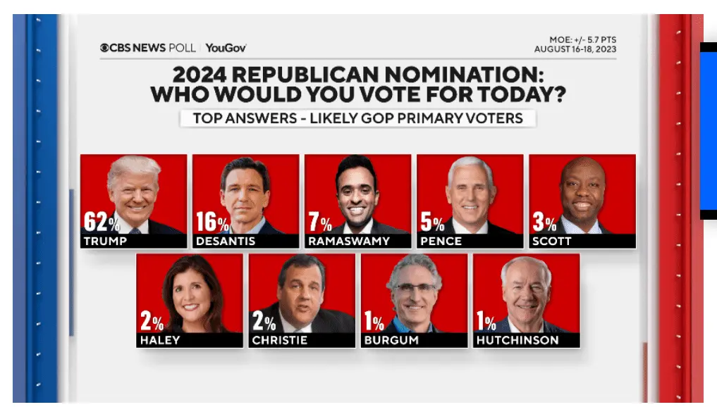 The indict, indict, indict, indict again, strategy is falling on its ass. Support for Trump goes up when they attack him through the weaponized justice system. The mugshot was a Hail Mary pass to make Trump look bad. It not only increased support due to the absurd lack of necessity for a picture of Trump with which to identify him, it gave his campaign an image so effective that they would have had to pay a handsome fee to a professional photog for it.