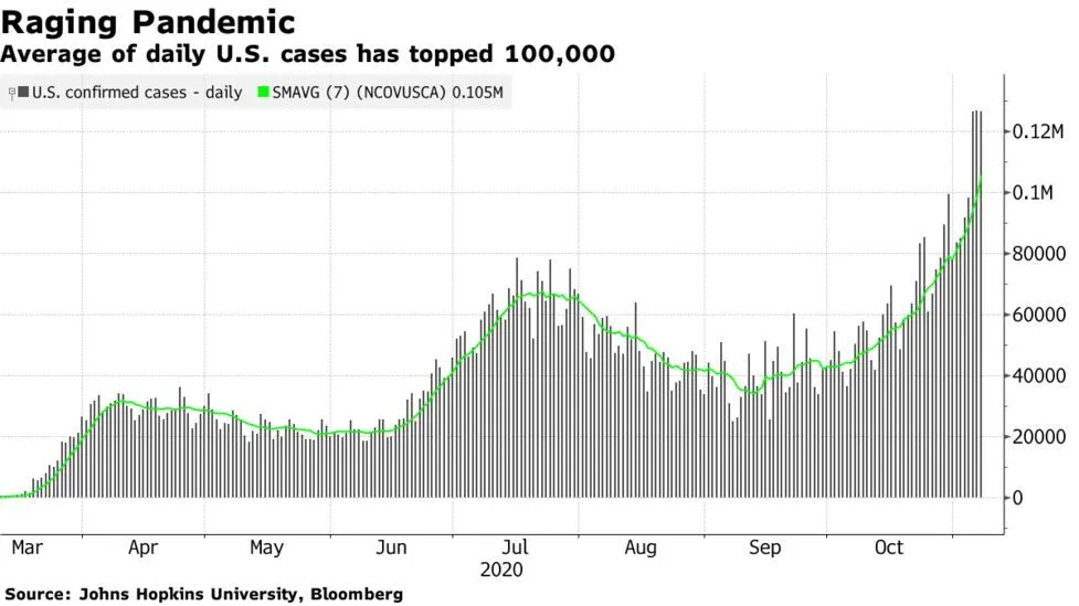 I looked up Trump's statement of rounding the curve. Supposedly he made that statement at the end of September. This is probably why: