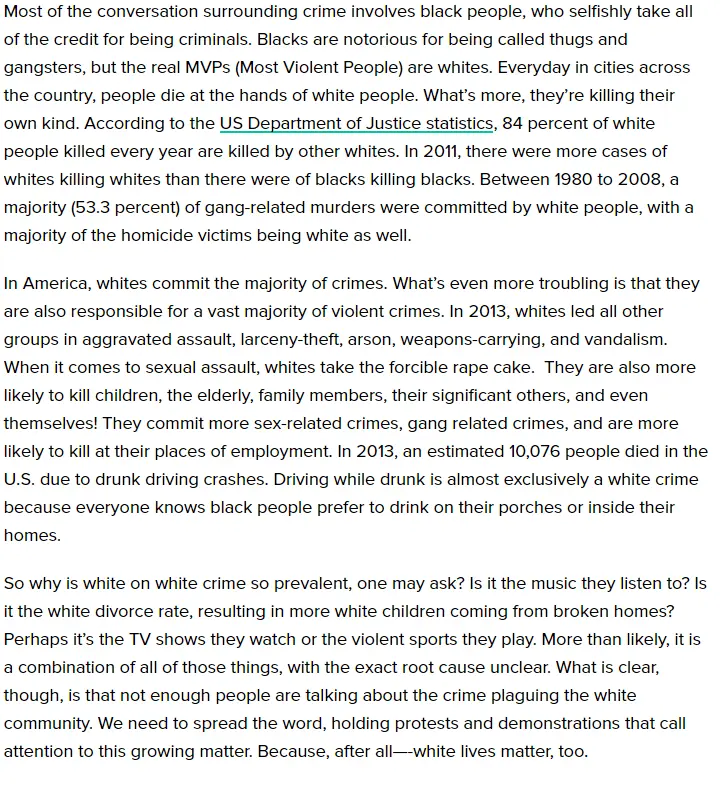 Apparently white lives don't matter to some white people more than getting online and talking white racist bullshit.