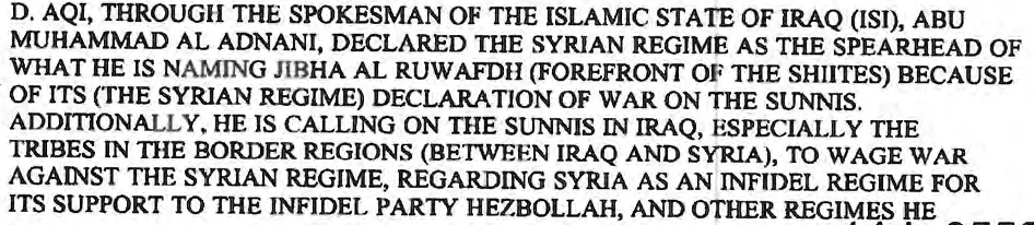 That date on the report was July 2012. ISIS didn't go on it's rampage until 2014, when Hillary was long gone. And as I recall, Romney and the Republicans were all for arming the rebels against Assad, while Obama was more than a little concerned about giving the rebels weapons and having them turned against American troops at some later point in time. Republicans didn't want to send in troops, but they wanted Assad gone, because of his ties to Russia.