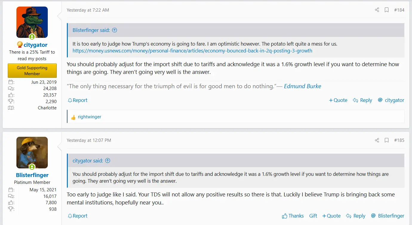 Still no response to the factual statement that adjusting for the import shifts we are running about a percent and a half GDP? Takes no hate to state a fact.Your TDS doesn't allow you to look at positive changes from Trump and recognize. Your hatred and mental problem is real.