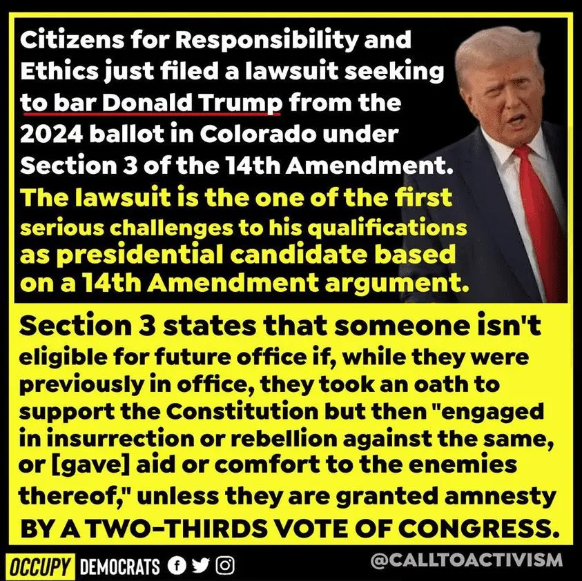 Some Republicans are even pushing for Trump's removal from the ballot. Bryant "Corky” Messner, a Senate nominee who was actually endorsed by Trump, used the Amendment section to question Trump's eligibility.