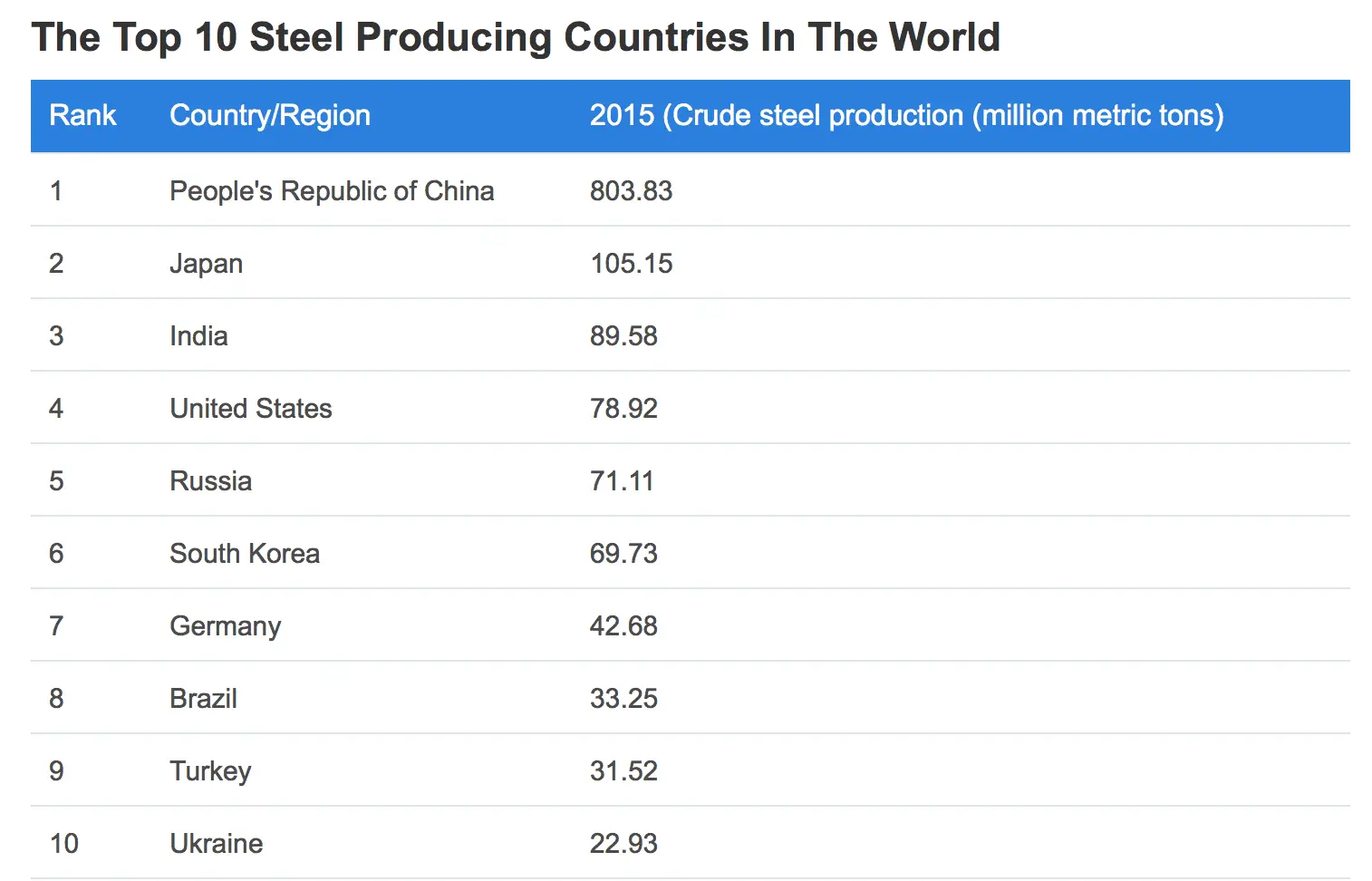 Top 10 Steel Producing Countries In The World