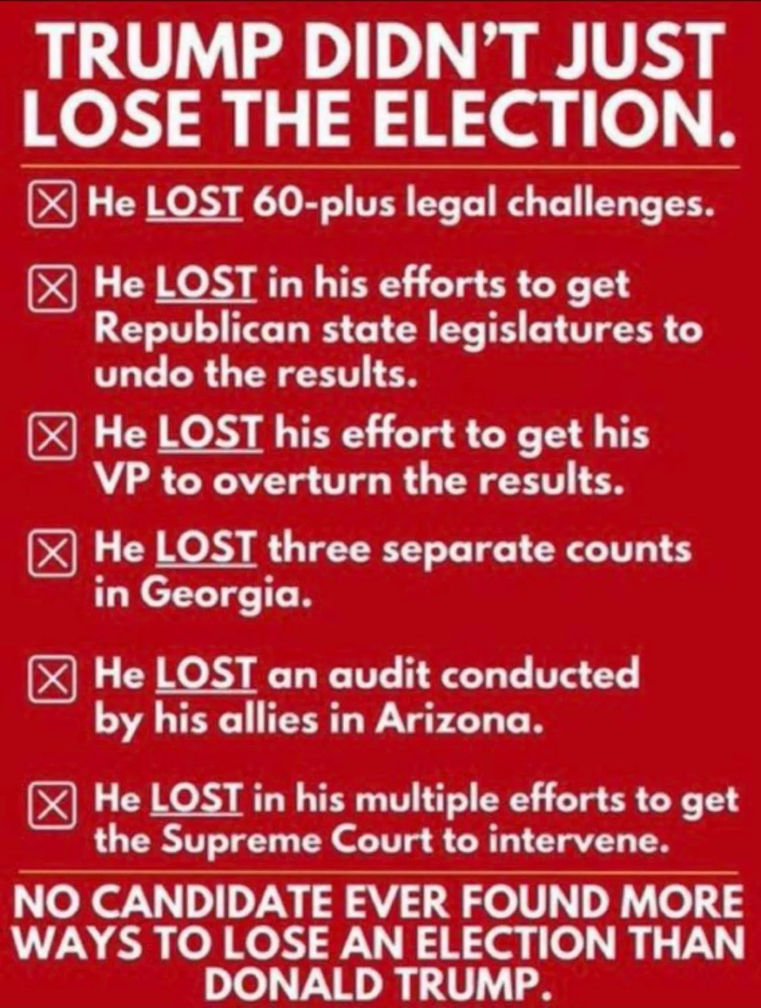 Will the GOP get the message that the majority of Americans are tired of this crap and want no part of it, or will the GOP nominate Trump again and loose again, and cry about election fraud with no evidence again??