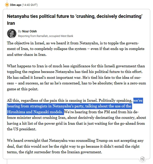 The tragic, civilization ending miscalculation is that Iran has no intention of surrendering and have already revealed their MAD capabilities!