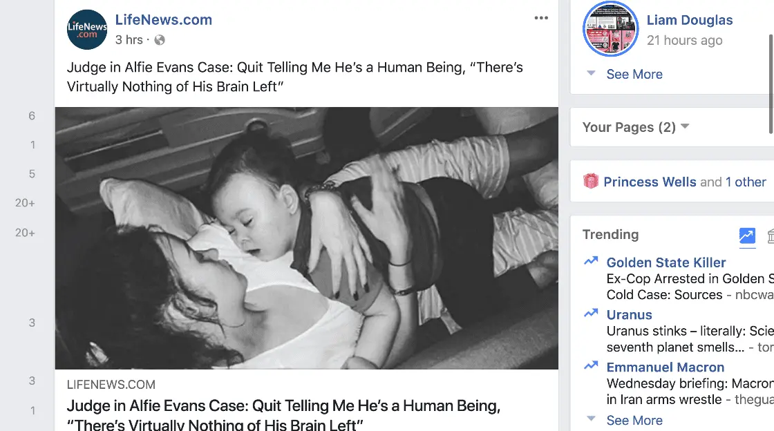 Alfie’s parents, Kate James and Tom Evans, wish to seek experimental treatments for what is thought to be a mitochondrial condition. Italy has granted Alfie citizenship and offered to transport him to a Vatican hospital. But UK and European courts have denied their right to seek alternate treatments for their son and instead have forcibly kept him in a hospital. Now they have turned off the ventilator and are waiting for him to die. These events remind us of the tragic case of Charlie Gard last year.
