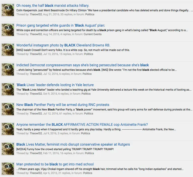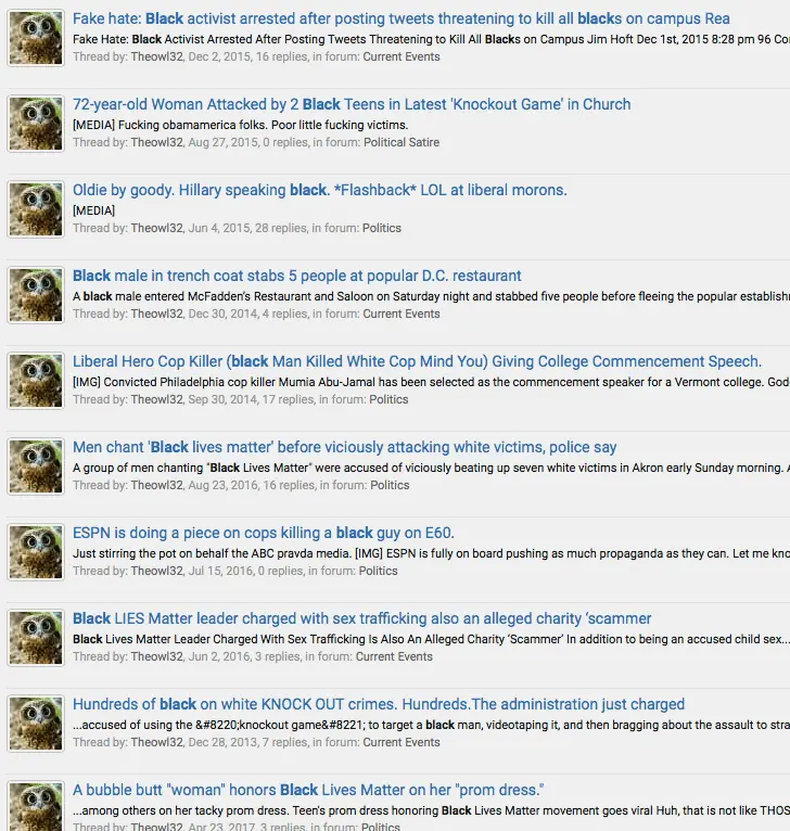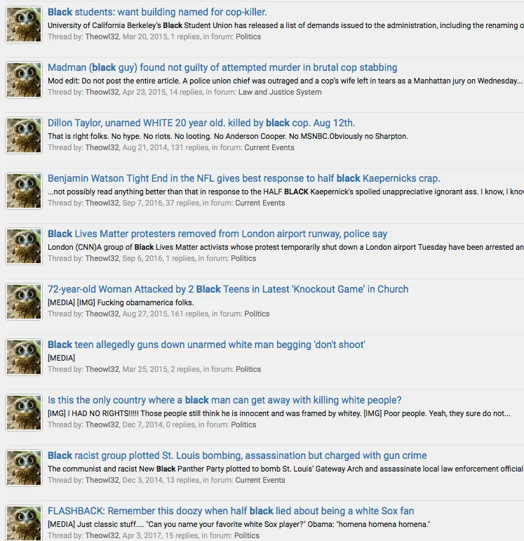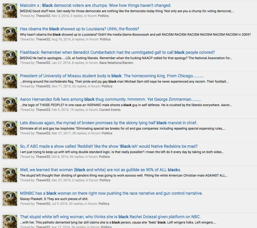 Typed the word black into the search engine and got 2 pages of threads you’ve made about black people. That is an obsession…. That you’ve had it since ’14 just speaks to what kind of sick **** you are.