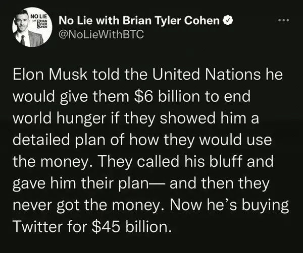 If governments are not involved it probably can.Did that moron explain how hunger could be solved for $6 billion? LOL!