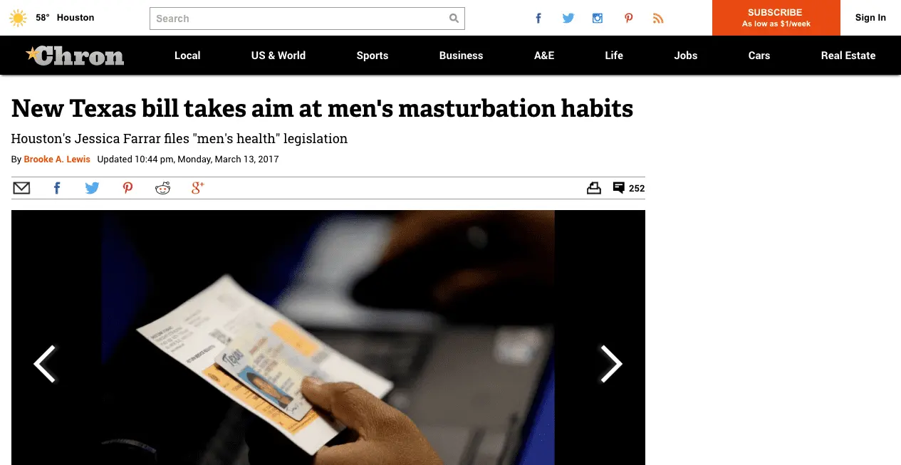 New Texas bill takes aim at men's masturbation habits