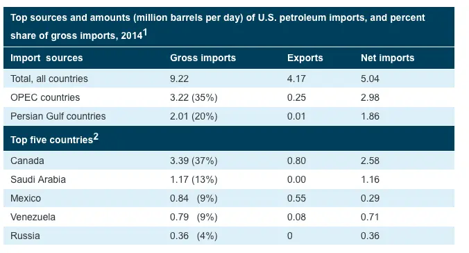 in 2014 THE USA had 35% imported from OPEC....