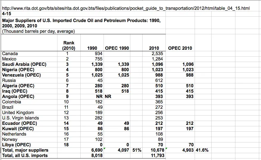 In 1990 The USA had 51% imported from OPEC....